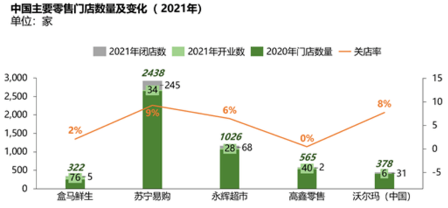 在2021年宣布自负盈亏后,盒马受内外部因素影响也经历了一两年的收缩调整。不过相较于其他零售企业,盒马关店率不大,降本增效后实现了在2022全年盒马鲜生销售额同比增长超25%的可喜成绩。