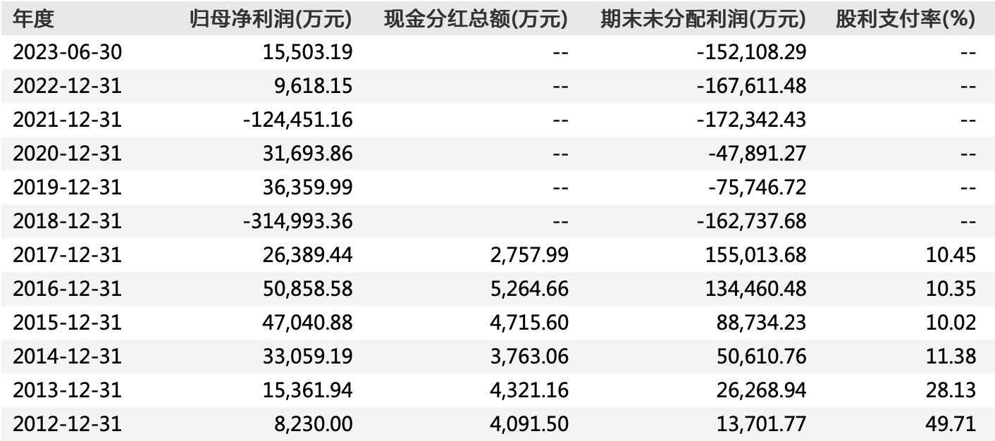 从分红情况看,Wind数据显示,公司2012年上市后,前6年每年都会分红,虽然股利支付率从2012年的49.71%逐年下降至2017年的10.45%,但毕竟聊胜于无。2018年,业绩急转直下,巨亏31.50亿元,自此之后公司就未再进行分红。
