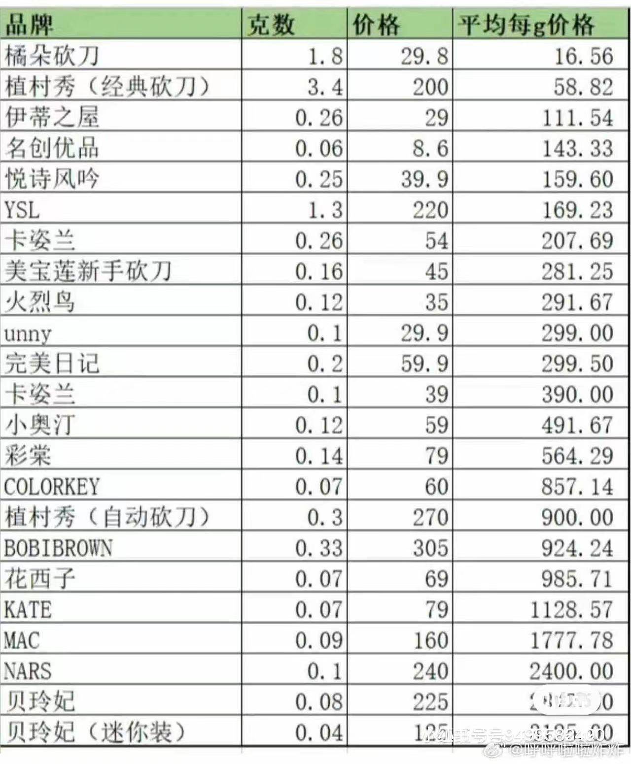 与此同时,根据网友统计,花西子眉笔单支克数较同类产品更低,因此平均每克价格甚至比“眉笔天花板”植村秀还要高,性价比较低。