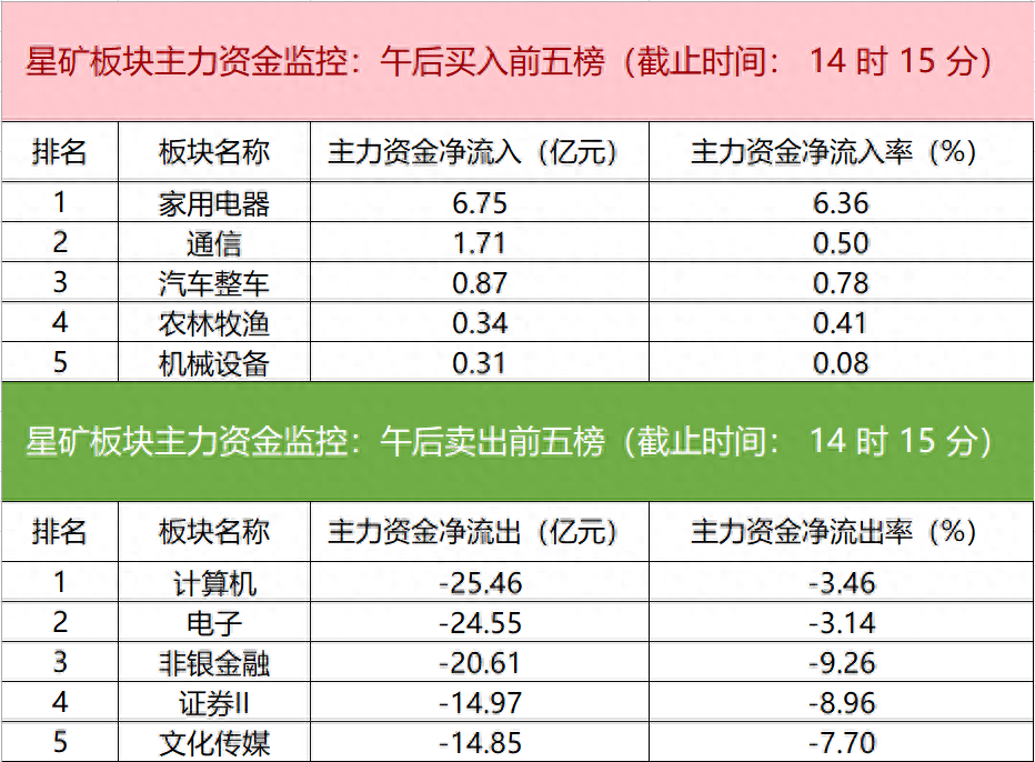 【主力资金监控:四川长虹净买入超5亿元】财联社9月12日电,财联社星矿数据显示,今日主力资金净流入家用电器、通信、汽车整车等板块,净流出计算机、电子、非银金融等板块,其中计算机板块净流出25.46亿元。个股方面,四川长虹涨停,主力资金净买入5.10亿元,比亚迪、光迅科技、拓维信息获主力资金净流入居前;张江高科遭净卖出超8亿元,荣联科技、人民网、华力创通等主力资金净流出额居前。