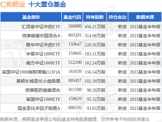 根据2023基金半年报公募基金重仓股数据,重仓该股的公募基金共62家,其中持有数量最多的公募基金为汇添富中证中药ETF。汇添富中证中药ETF目前规模为21.68亿元,最新净值1.1313(9月8日),较上一交易日下跌0.29%。该公募基金现任基金经理为过蓓蓓。过蓓蓓在任的基金产品包括:汇添富中证主要消费ETF联接A,管理时间为2015年8月3日至今,期间收益率为146.71%;汇添富中证主要消费ETF,管理时间为2015年8月3日至今,期间收益率为152.44%;汇添富中证医药卫生ETF,管理时间为2015年8月3日至今,期间收益率为-11.52%;汇添富中证生物科技指数(LOF)A,管理时间为2016年12月22日至今,期间收益率为28.11%。