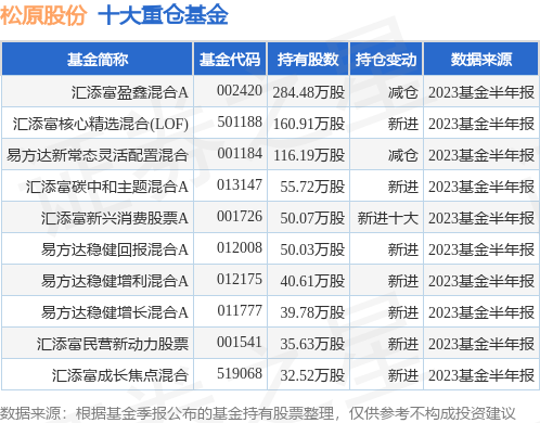 重仓松原股份的前十大公募基金请见下表:
