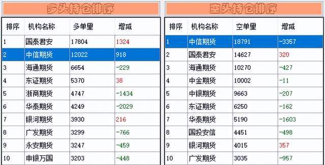 先来看下对下一个交易日有预判作用的“神器”——中信期货在股指期货上的增减持情况。它在沪深300股指期货上多单方面增仓918手,空单方面减仓3357手,给出了“偏多”的信号——预判失误。