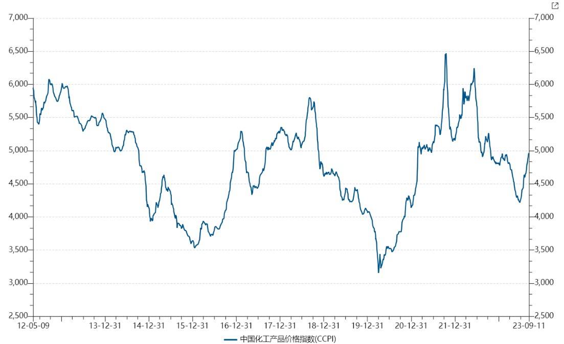 近期化工品价格持续上行,一定程度或也反馈了下游备战“金九银十”提前采购。数据显示,截至9月11日,中国化工产品价格指数(CCPI)进一步上行至4962点,9月以来涨幅达2.4%。