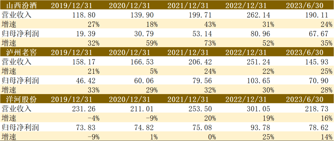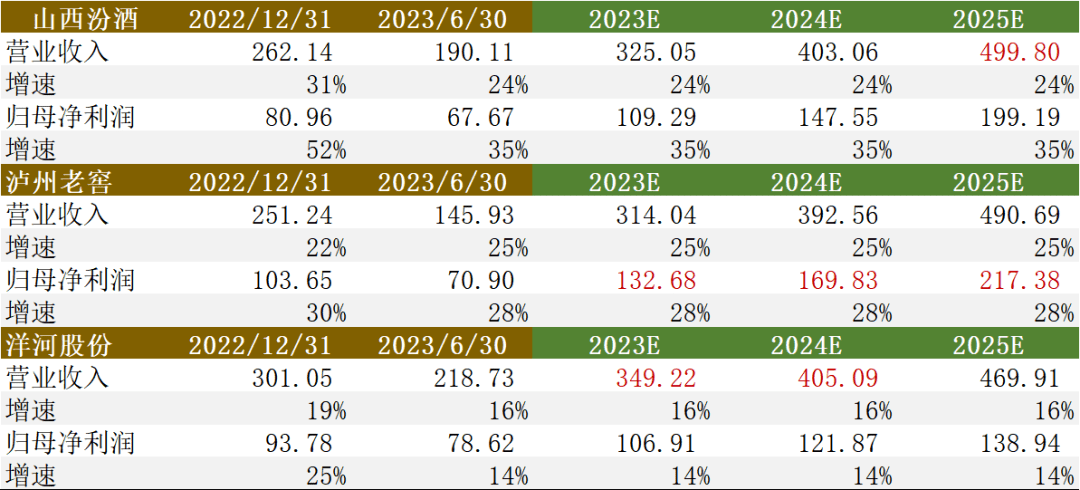 假设这三家公司在未来几年均按照2023年半年报增速增长,那么山西汾酒有望在2025年实现499.8亿元收入,超过泸州老窖和洋河股份;今年则有望在归母净利润指标上超过洋河股份。
