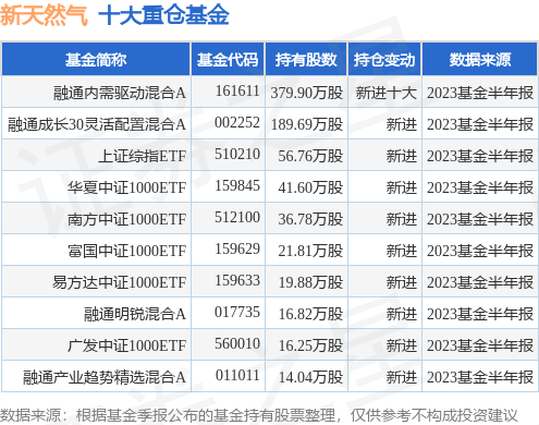 重仓新天然气的前十大公募基金请见下表: