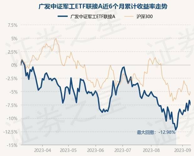 9月12日,广发中证军工ETF联接A最新单位净值为1.0224元,累计净值为1.0224元,较前一交易日下跌0.37%。历史数据显示该基金近1个月上涨1.15%,近3个月上涨1.09%,近6个月下跌7.81%,近1年下跌12.26%。该基金近6个月的累计收益率走势如下图: