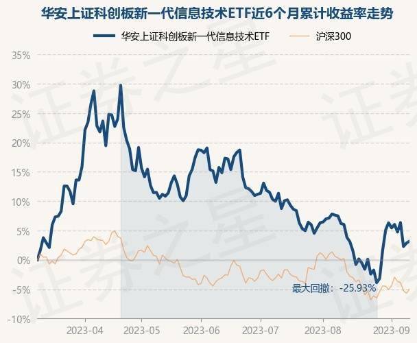 9月12日,华安上证科创板新一代信息技术ETF最新单位净值为1.069元,累计净值为1.069元,较前一交易日下跌0.87%。历史数据显示该基金近1个月下跌1.49%,近3个月下跌10.92%,近6个月上涨2.29%,近1年上涨9.29%。该基金近6个月的累计收益率走势如下图:
