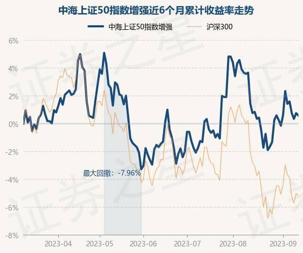 9月12日,中海上证50指数增强最新单位净值为1.213元,累计净值为1.441元,较前一交易日下跌0.16%。历史数据显示该基金近1个月下跌0.82%,近3个月上涨2.31%,近6个月上涨0.53%,近1年下跌3.66%。该基金近6个月的累计收益率走势如下图: