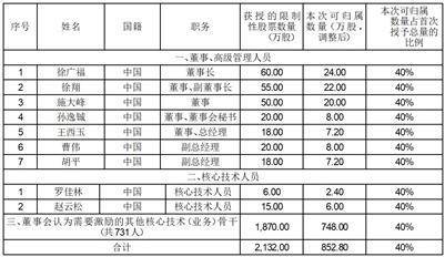 注:1、以上激励对象已剔除离职人员;