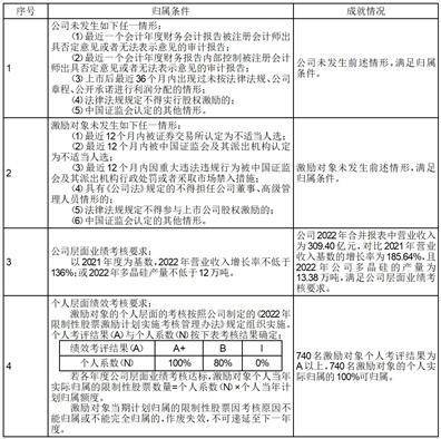 具体内容详见公司于同日在上海证券交易所网站(www.sse.com.cn)上披露的《新疆大全新能源股份有限公司关于2022年限制性股票激励计划第一个归属期归属条件成就的公告》(公告编号:2023-044)。