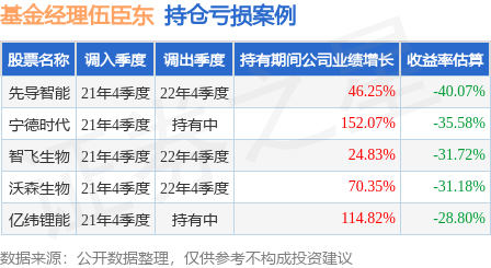 伍臣东管理的易方达中证科创创业50ETF联接A基金在21年4季度买入先导智能,在持有1年又0个季度后在22年4季度卖出。持有期间的估算收益率为-40.07%,持有期间先导智能在2021年到2022年的年报归属净利润增幅达46.25%。