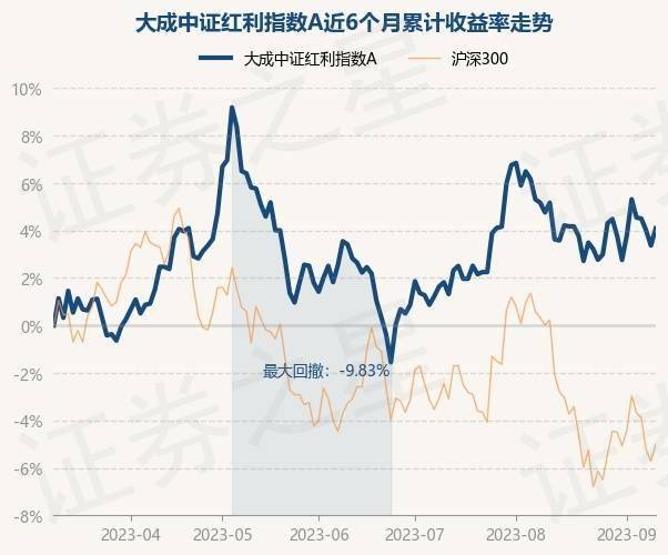 9月12日,大成中证红利指数A最新单位净值为2.285元,累计净值为2.441元,较前一交易日下跌0.13%。历史数据显示该基金近1个月上涨0.31%,近3个月上涨1.06%,近6个月上涨3.91%,近1年上涨1.33%。该基金近6个月的累计收益率走势如下图: