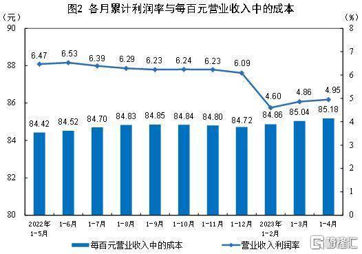 1—4月份,规模以上工业企业每百元营业收入中的成本为85.18元,同比增加0.91元;每百元营业收入中的费用为8.40元,同比增加0.31元。