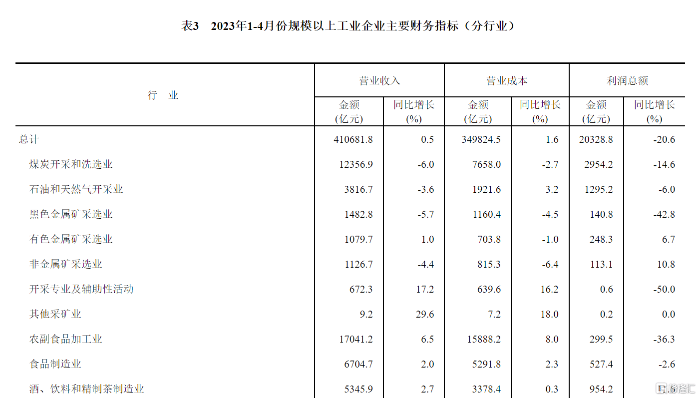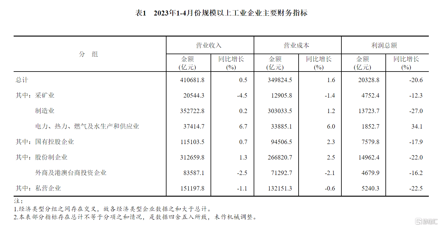 5月27日,国家统计局公布1-4月规模以上工业企业利润。