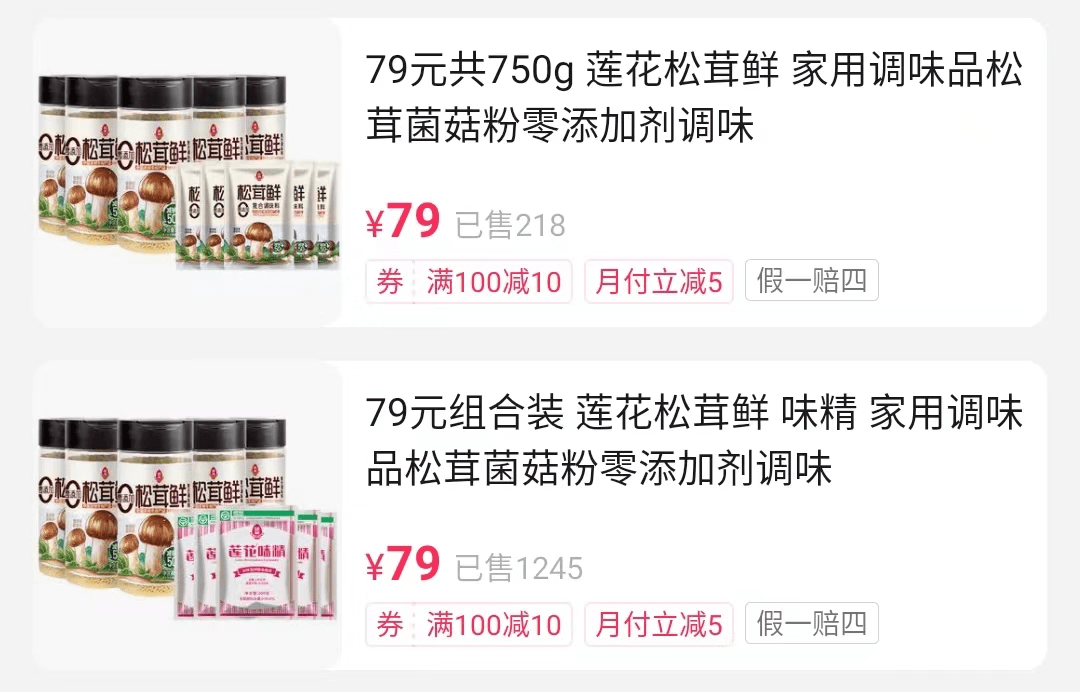 羊城晚报全媒体记者在抖音莲花官方旗舰店发现,目前共有两款79元的调味套餐在售,净含量分别为750g、1000g。
