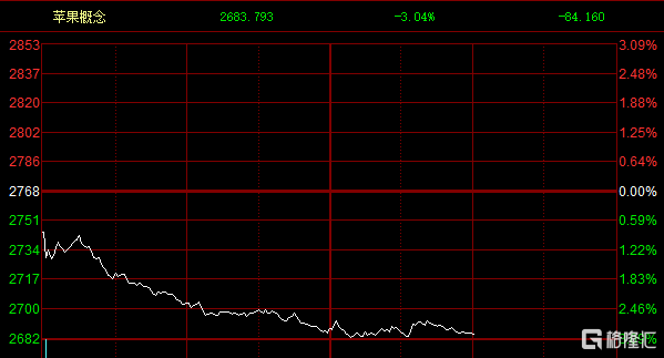 继隔夜美股苹果收跌近2%,市值一夜蒸发478亿美元(约人民币3485亿元),市值跌破2.8万亿美元。今日A股苹果概念股跟随重挫,截至发稿,板块指数跌超3%,个股方面,智信精密跌超11%,胜宏科技、蓝特光学跌超7%,东山精密跌近6%,立讯精密跌超4%,歌尔股份跌超3%。