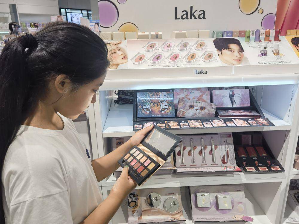 20多岁的东京女孩丰珍在银座一家商场选购了中国彩妆品牌完美日记的眼影盘。她对新华社记者说:“我感觉广告模特的造型非常可爱,忍不住想尝试一下靓丽明艳的中式妆容。”