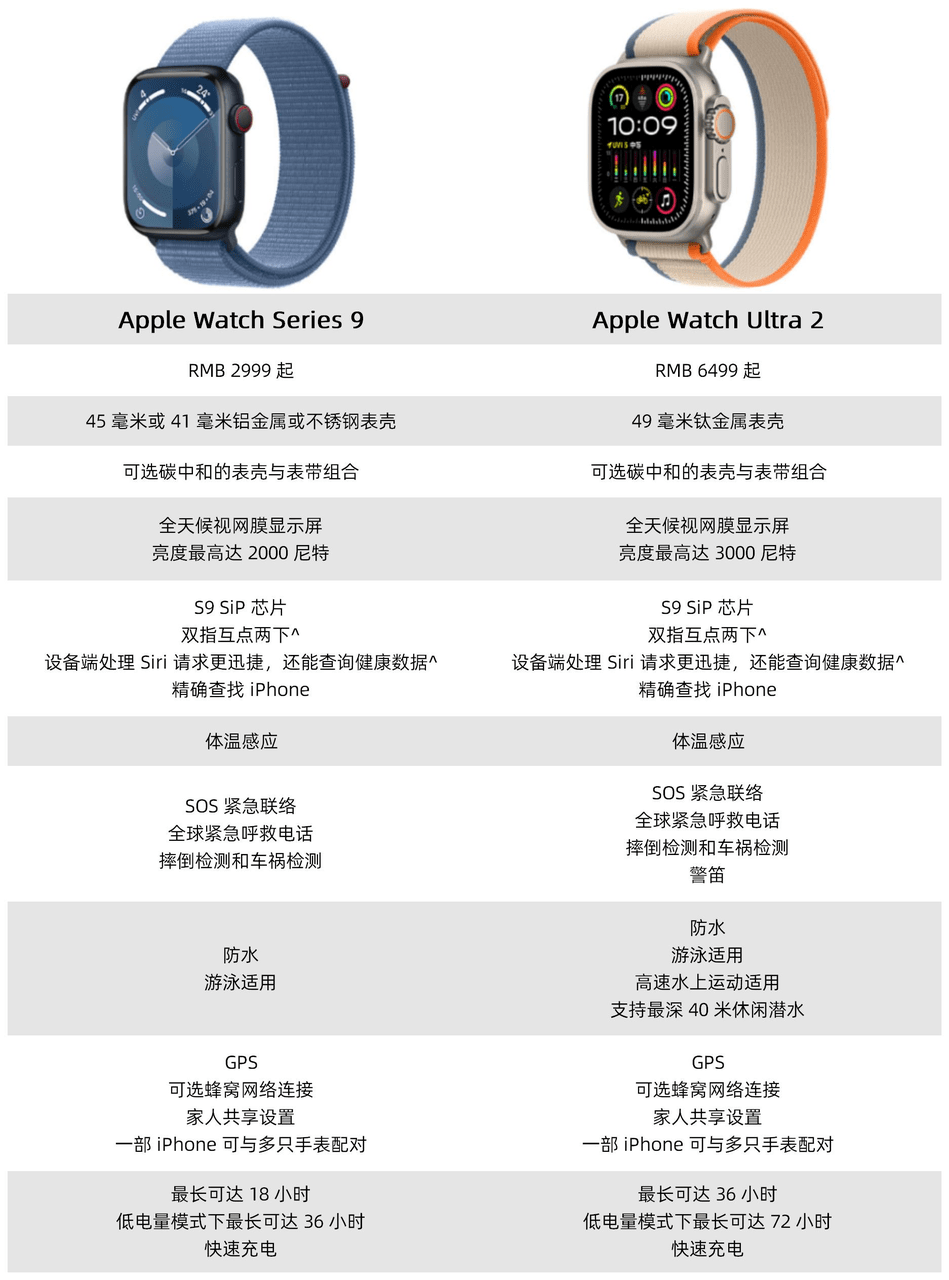 我直接好家伙,苹果表今年更新还是新瓶装旧酒啊!Apple Watch S9和Apple Watch Ultra2两款手表在9月13日苹果发布会上迎来更新,外观最明显的就是升级了新配色,质感跟上一代没变化,内在升级了S9芯片,学习能力增强,续航18小时,依旧逃不过一天一充,健康方面的传感器没有变化,这点升级对于S7\S8用户来说没有太大的升级动力,如果是S6以往的用户,倒是在体验上有着巨大提升。