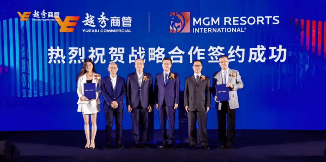 2023年,越秀商管战略合作全面进阶,目前达成深度合作的品牌已超170余家。发会上,越秀商管牵手全球知名娱乐巨头美高梅(MGM),双方在“文体娱+高端餐饮+酒店公寓”等领域全面深度合作,形成“越秀-MGM”合作共荣体,开启商业新篇章。