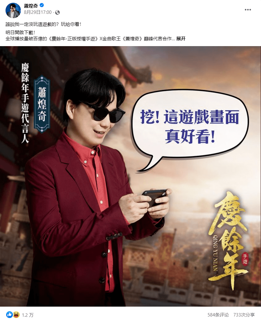 在游戏上线前后,代言人萧煌奇也在Facebook“玩梗”,发布内容为游戏造势,不少玩家纷纷表示“有趣”。