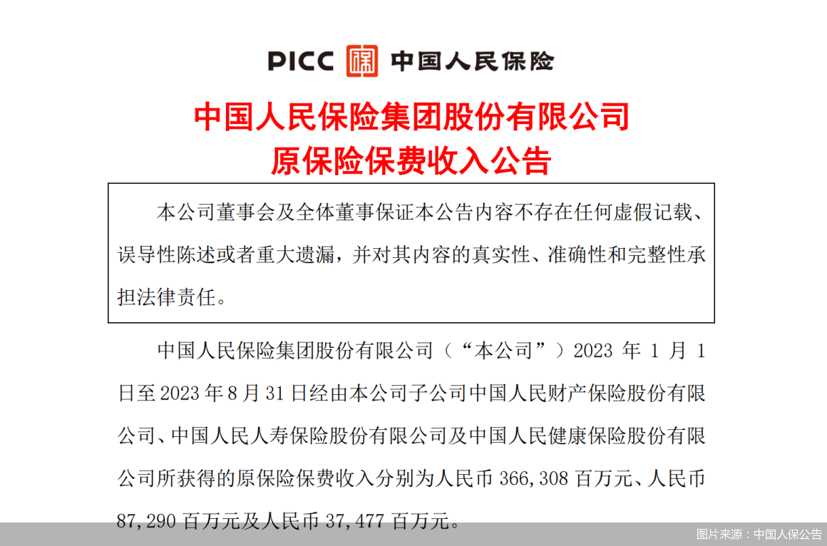 原标题:中国人保:前8月原保险保费收入为4910.75亿元