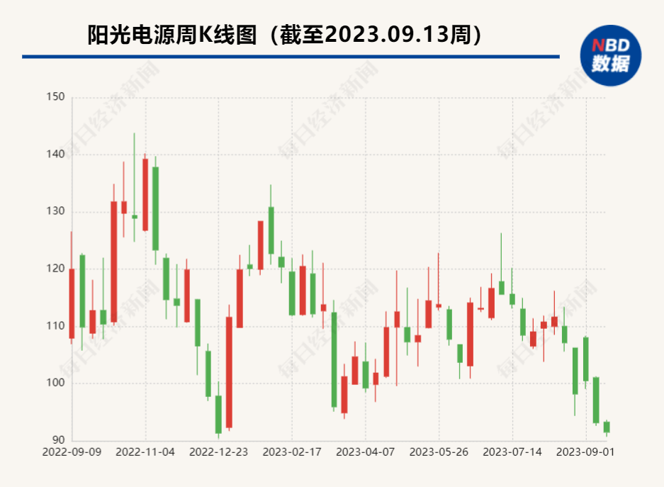 然而公司股价表现却不尽如人意,与业绩表现相背离。9月12日,阳光电源股价盘中一度下探90.71元,刷新年内低点。