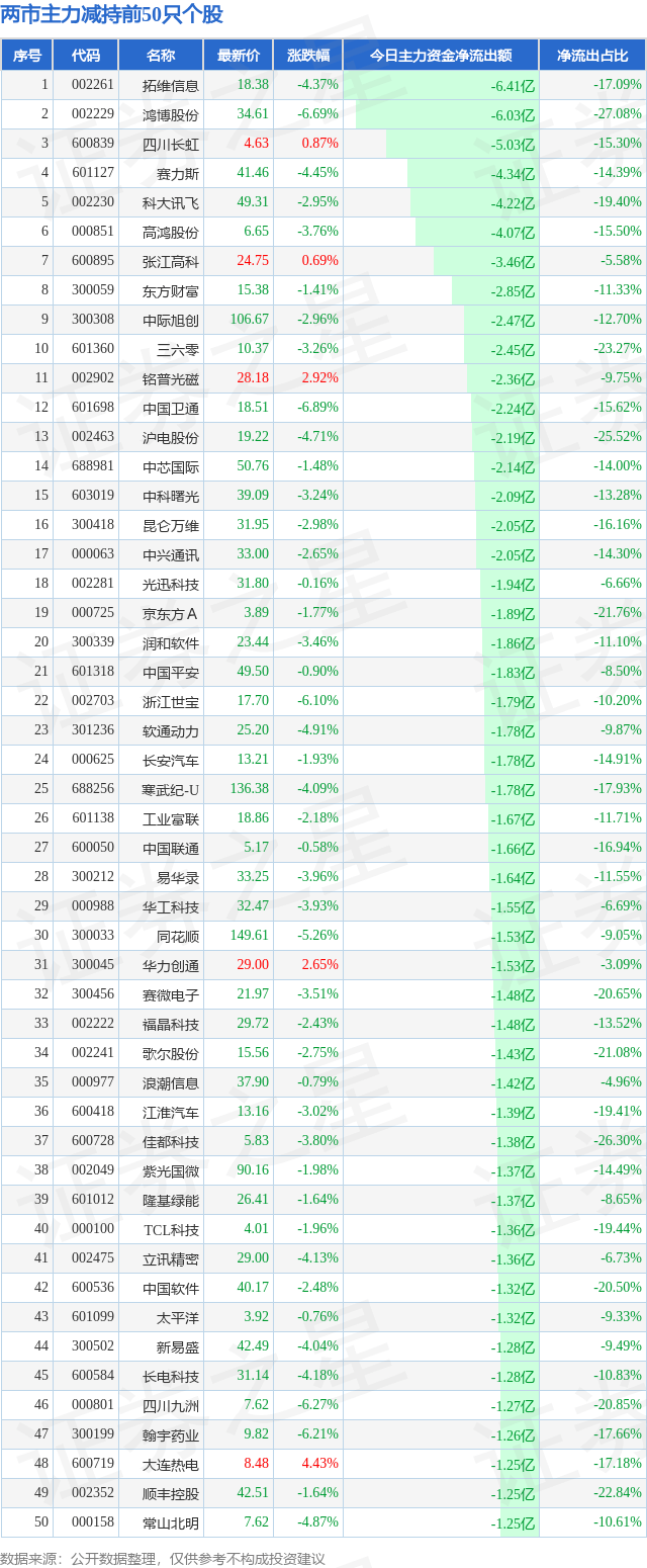 今天的市况大概如此,那么又有哪些公司遭主力抛弃呢?请看下表: