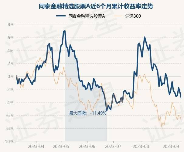 9月13日,同泰金融精选股票A最新单位净值为0.7879元,累计净值为0.7879元,较前一交易日下跌0.89%。历史数据显示该基金近1个月下跌5.06%,近3个月下跌2.06%,近6个月下跌3.42%,近1年下跌10.64%。该基金近6个月的累计收益率走势如下图: