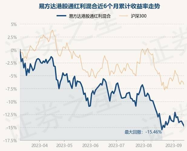 9月13日,易方达港股通红利混合最新单位净值为0.6146元,累计净值为0.6146元,较前一交易日下跌0.53%。历史数据显示该基金近1个月下跌4.62%,近3个月下跌8.79%,近6个月下跌14.73%,近1年下跌18.59%。该基金近6个月的累计收益率走势如下图: