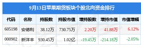 北向资金方面,当日苹果期货板块北向资金持股市值为1.1亿元,减持172.3万元。其中增持最多的是安德利,增持了41.88万元。减持持最多的是新洋丰,减持了214.18万元。苹果期货板块北向资金持股变动明细见下表: