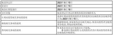 1)选择现金分红方式的投资者的红利款将于2023年9月18日自基金托管账户划出。