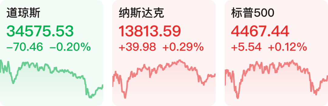 美股三大指数收盘涨跌不一,纳指涨0.29%。