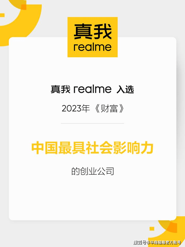 9月13日,2023年《财富》中国最具社会影响力创业公司榜单正式发布。今年的榜单也迎来了新面孔——始终以“敢越级”的品牌精神为指导,深受全球年轻人喜爱的科技品牌真我realme强势入选。