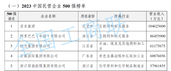 9月12日,全国工商联发布2023中国民营企业500强榜单和《2023中国民营企业500强调研分析报告》。