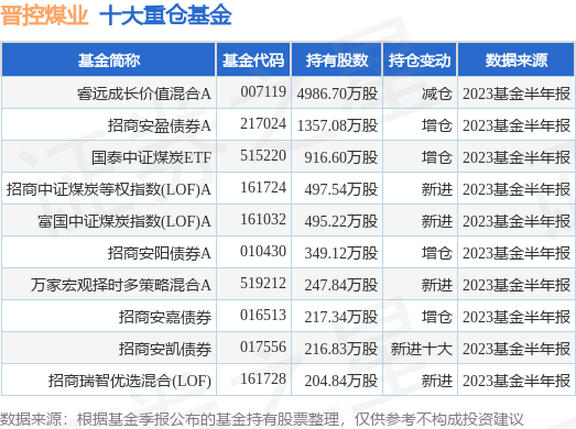 重仓晋控煤业的前十大公募基金请见下表: