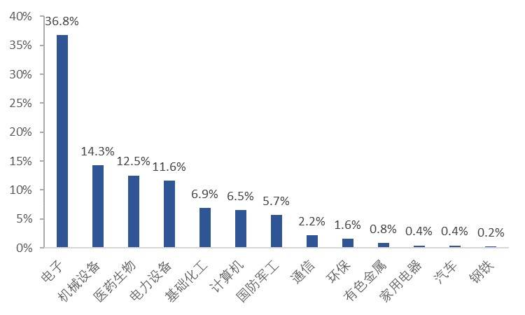 其余占比较高的行业还有机械设备(14.3%)、医药生物(12.5%)、电力设备(11.6%)。