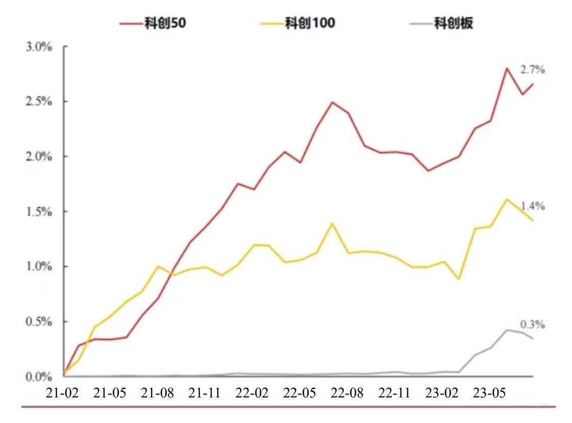 北向持续增配科创100标的更是从21年就已开始,科创100的北向持股占比已达1.4%,今年以来北向持续增配,持股增长0.4%。