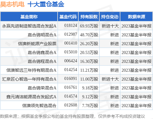 重仓昊志机电的前十大公募基金请见下表: