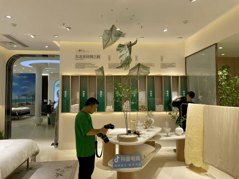 纤意坊产业园,是南通叠石桥当地家纺龙头企业金太阳投资的项目。达人前来选品的「纤意坊生活美学馆」是一个家纺品牌聚合展厅,总面积约2.5万平方米,工作人员告诉剁椒,叠石桥当地各家纺细分类目Top10企业、品牌都已入驻。9月6日-17日举行的抖音电商南通家纺电商直播节,也在此处进行。