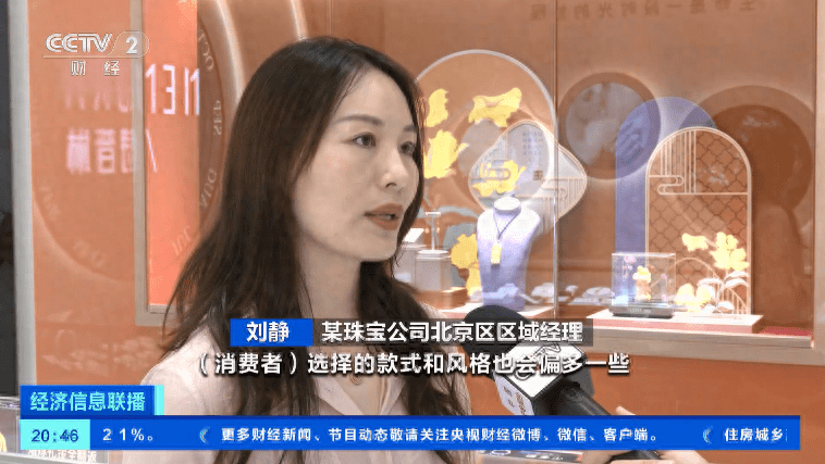某珠宝公司北京区区域经理 刘静:购买黄金饰品的人较去年同期增加至少三倍,现在轻克重的选择率较大。