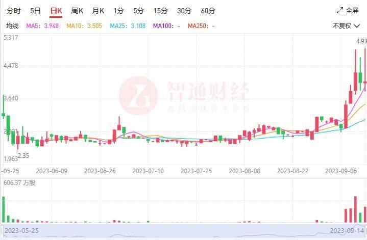 智通财经APP注意到,9月14日,宏信建发延续了此前几个交易日的上涨势头,盘中涨幅一度超过21%,股价最高触及4.93港元,创下上市以来新高。耐人寻味的是,截至当天收盘,该股报4.07港元,涨幅大幅收窄至0.25%。不过,若拉长时间来看,最近5个交易日,宏信建发累计涨幅也已经达到了40.34%。