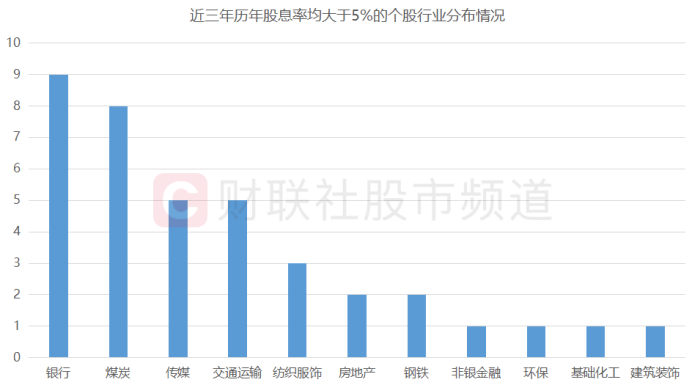 注:近三年(2020年至2022年)历年股息率均大于5%的个股行业分布情况