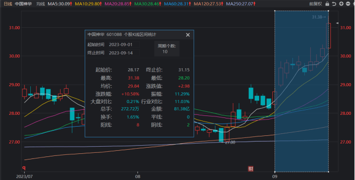 注:中国神华今日盘中创2008年以来新高(截至9月14日收盘)