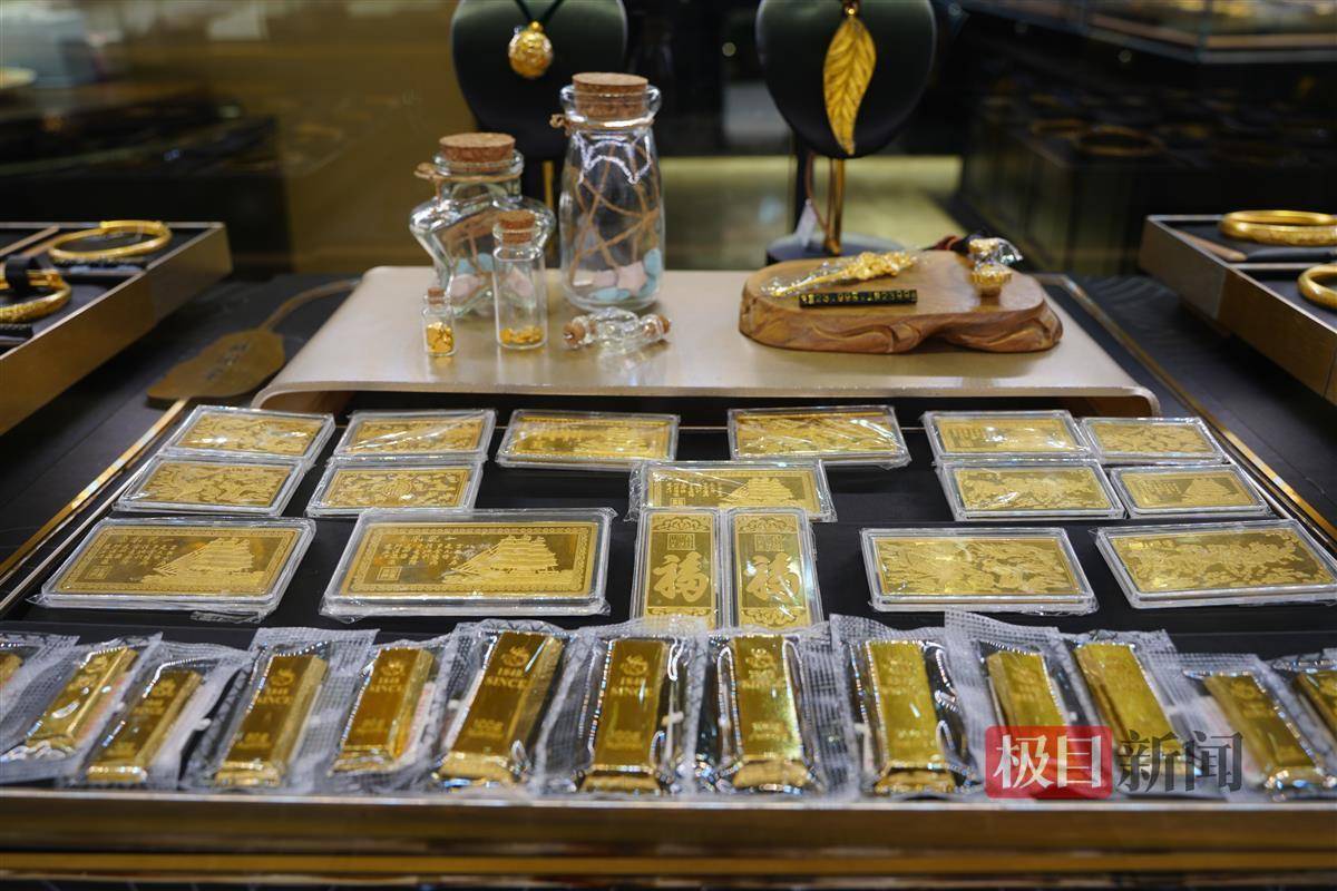 在中国金币专柜,极目新闻记者看到,当日基础金价为每克474.40元左右,投资金条零售价在每克488.40元左右,相比其他品牌便宜不少。专柜工作人员介绍,这是因为该品牌售卖的金条没有进行再加工,近似于“裸金”,所以价格相对低一些。