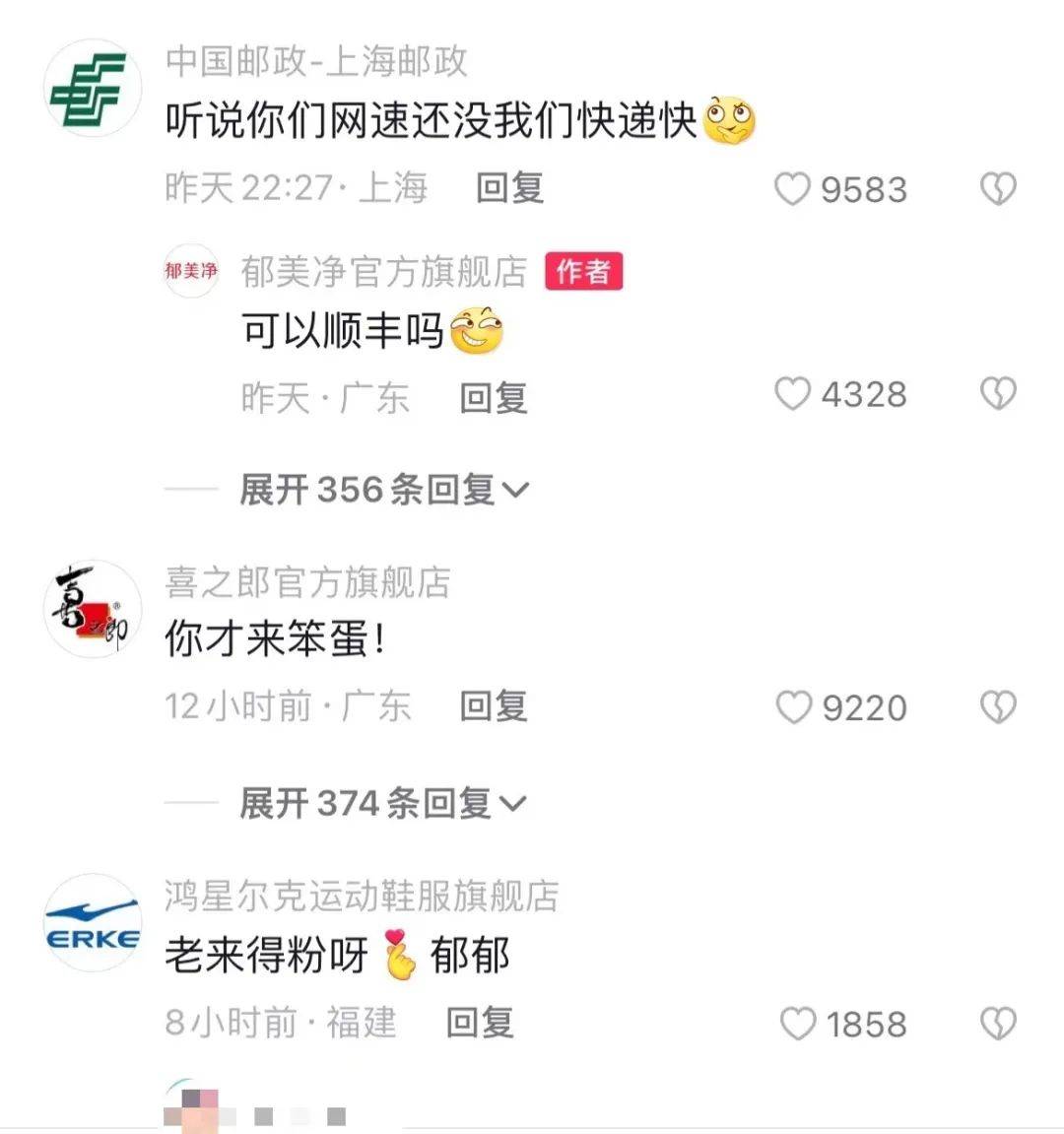 在抖音上,不少人对此评论。中国邮政上海分公司评论:“听说你们网速还没我们快递快”;喜之郎回复道:“你才来笨蛋”。还有网友评论:你怎么才来!