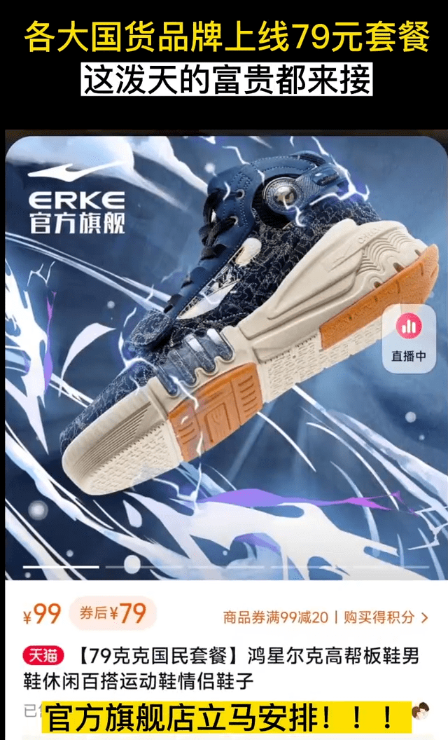 随后,鸿星尔克直播间多款鞋子标价降为79,三件衣服甚至都不过百。