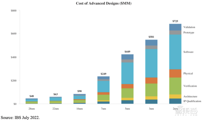 根据市研机构IBS的数据,7nm芯片的IC设计成本约为2.49亿美元,2nm芯片的IC设计成本约为7.25亿美元。设计合作伙伴通过降低开发周期重要部分的复杂性、风险和成本,促进创新并增强客户的竞争地位。IBS估计,设计2nm芯片,软件开发、验证和IP认证占总成本的71%。