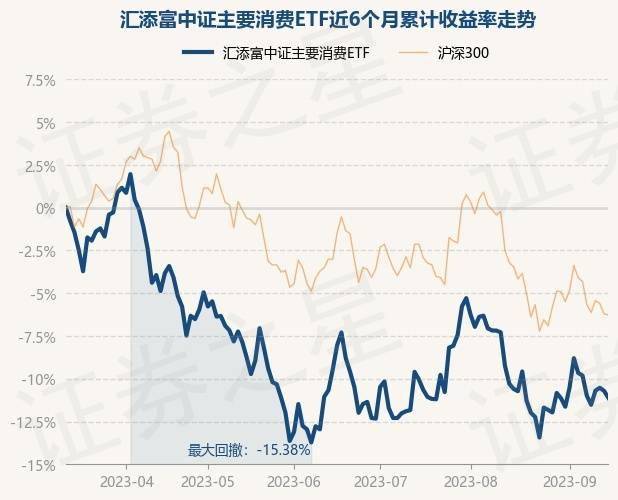 9月14日,汇添富中证主要消费ETF最新单位净值为0.9368元,累计净值为3.7472元,较前一交易日下跌0.46%。历史数据显示该基金近1个月下跌0.91%,近3个月下跌1.83%,近6个月下跌11.07%,近1年下跌10.47%。该基金近6个月的累计收益率走势如下图: