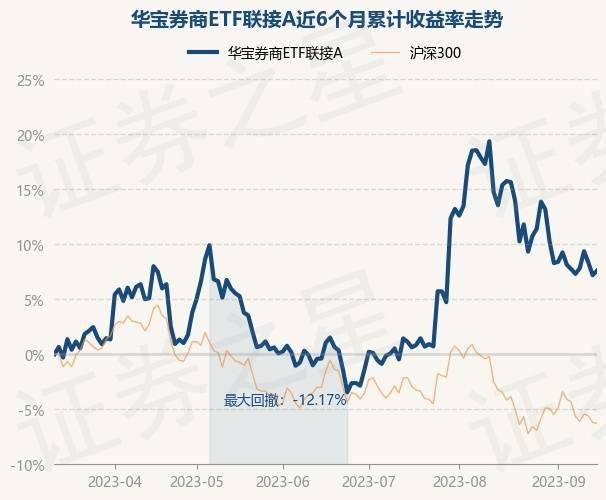 9月14日,华宝券商ETF联接A最新单位净值为1.3549元,累计净值为1.3549元,较前一交易日上涨0.38%。历史数据显示该基金近1个月下跌5.23%,近3个月上涨8.03%,近6个月上涨7.57%,近1年上涨4.15%。该基金近6个月的累计收益率走势如下图: